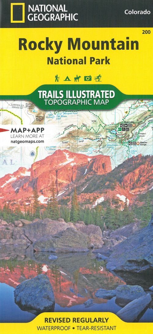 Rev. udgave 2019. Falset kort, trykt på plastpapir, i målestokken 1:50.000 over hele nationalparken i Colorado. Vandre- og hesteruter, campingpladser, afstande. Med højdeangivelser, sikkerhedstips, parkinformation, regler, dyreliv, beskrivelse af ruterne, gode råd om opførsel i naturen og møde med dyr.