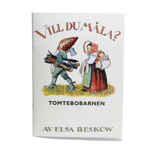 Malebog med 16 af Elsa Beskows klassiske illustrationer til De små skovnisser til at farvelægge.