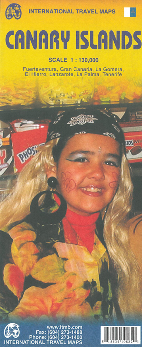1. udgave 2012. Dobbeltsidet falset kort i målestokken 1:130.000 over Fuerteventura, Gran Canaria, La Gomera, El Hierro, Lanzarote, La Palma og Tenerife. Indsatte bykort over Puerto Naos, Los Cancajos, Puerto de la Cruz, Los Llanos de Aridane, Santa Cruz de Tenerife, Las Palmas, Morro Jable, Peruto del Rosario, Arrecife og Corralejo. Derudover oversigtskort over øernes beliggenhed i forhold til hinanden. Med registre.