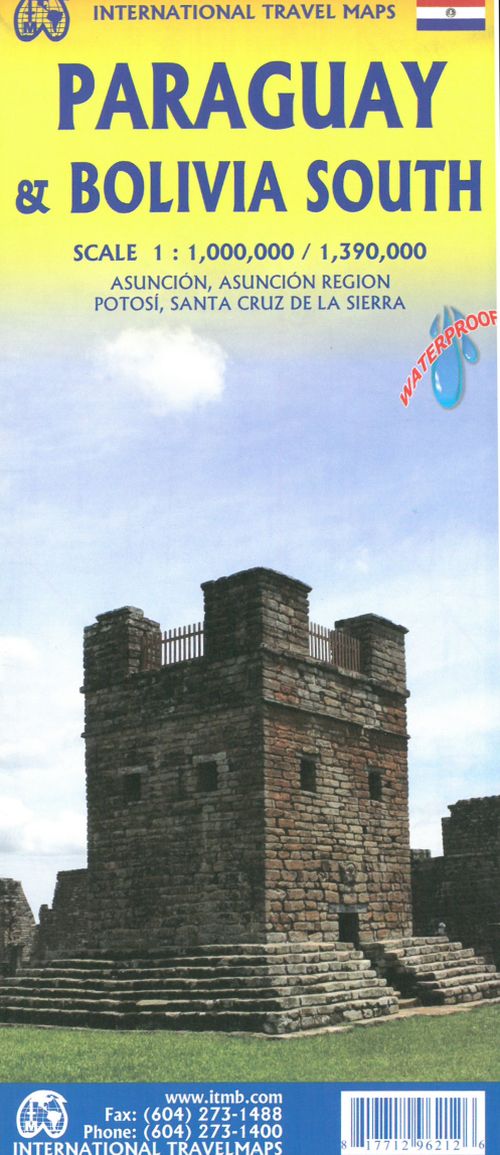 inset maps of Potosi and Santa Cruz in scale 1:390.000. The second side concentrates on Paraguay itself with inset maps of Asuncion, the Asuncion region, and northern Paraguay 1:1.000.000. Small bits of bordering countries also are included. Road connections within Paraguay have been shown to good advantage. Both countries, being land-locked, are somewhat isolated, making travel to them something more adventuresome than visits to neighbouring countries. However, both are hospitable, safe, and tourist-friendly.